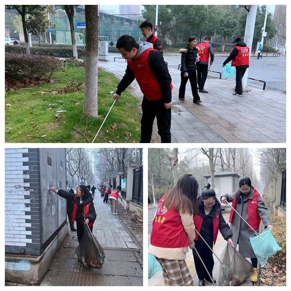 活動中,志愿者們身穿紅馬甲分組行動,互相配合,有的拾撿街道地面上及綠化帶中的煙頭、白色塑料袋,有的清理電線桿上的小廣告,勸導街上的行人有序停放車輛,不亂扔垃圾,自覺維護社區(qū)環(huán)境,引導社區(qū)居民從自身做起,倡導文明共享、綠色環(huán)保的理念。