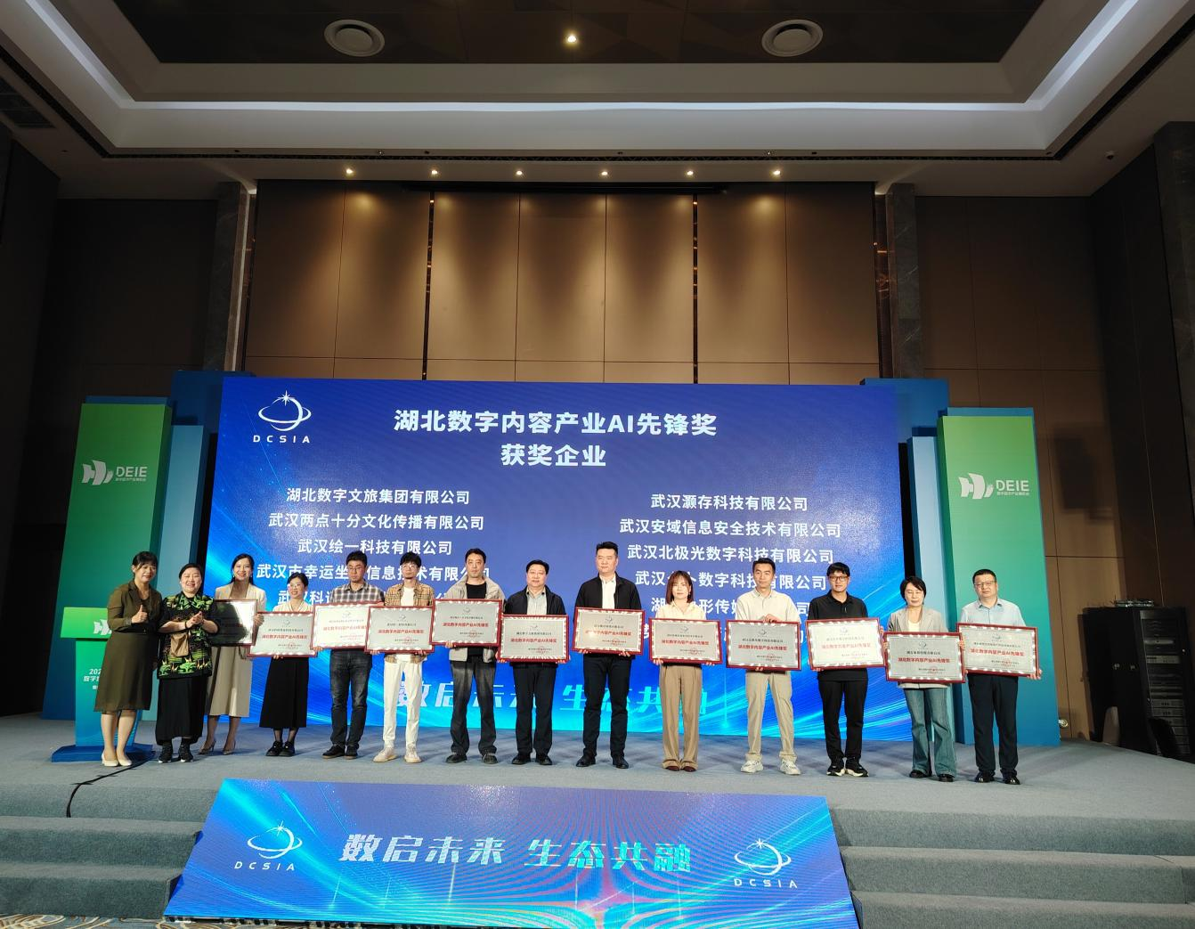 本屆數(shù)博會以“乘數(shù)而上 建成支點”為主題,助力湖北省數(shù)字經(jīng)濟高質量發(fā)展?;顒蝇F(xiàn)場發(fā)布了“湖北省數(shù)字內(nèi)容企業(yè)生態(tài)圖譜”,并對行業(yè)先進企業(yè)進行表彰。數(shù)旅集團榮獲“湖北數(shù)字內(nèi)容產(chǎn)業(yè)AI先鋒獎”。