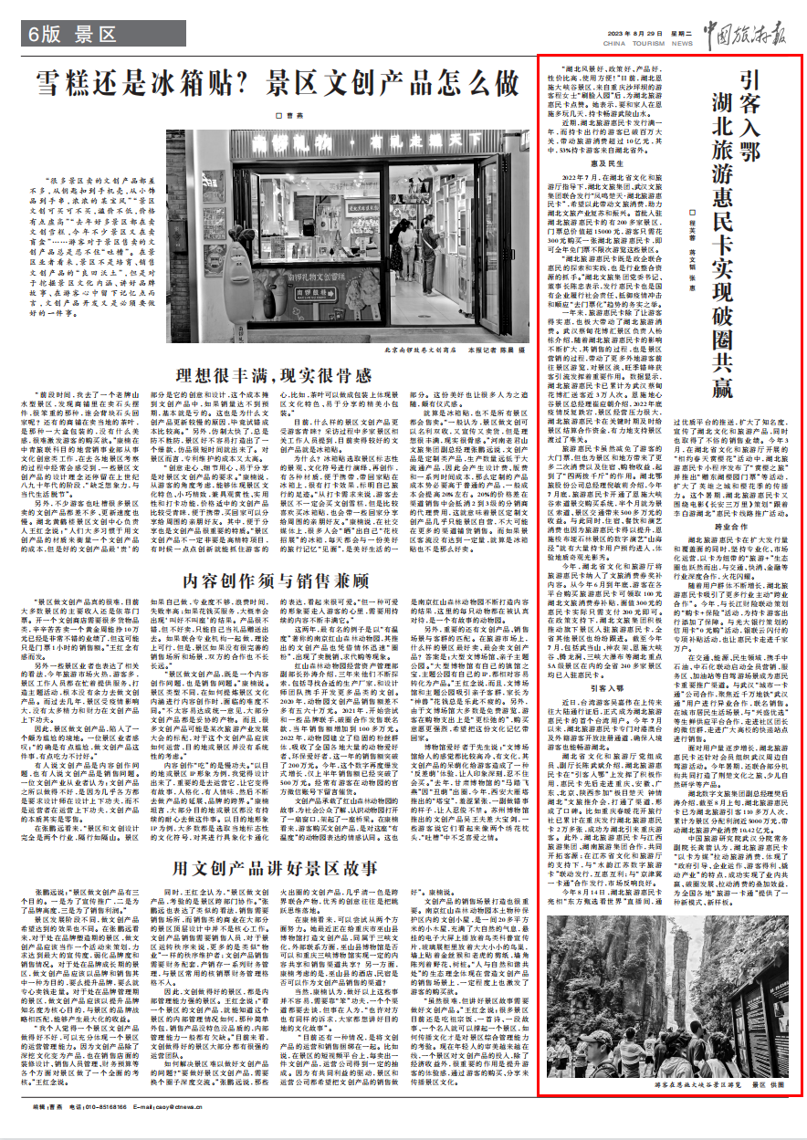 編者按:日前,《中國旅游報(bào)》以《引客入鄂 湖北旅游惠民卡實(shí)現(xiàn)破圈共贏》為題,聚焦湖北旅游惠民卡“引客入鄂”、撬動(dòng)產(chǎn)業(yè)以及創(chuàng)新運(yùn)營的相關(guān)成效,現(xiàn)將相關(guān)內(nèi)容轉(zhuǎn)載如下。 □ 程芙蓉 蔣文韜 張惠 “湖北風(fēng)景好、政策好、產(chǎn)品好,性價(jià)比高,使用方便!”日前,湖北恩施大峽谷景區(qū),來自重慶沙坪壩的游客程女士“刷臉入園”后,為湖北旅游惠民卡點(diǎn)贊。她表示,要和家人在恩施多玩幾天,持卡暢游武陵山水。 近期,湖北旅游惠民卡發(fā)行滿一年,而持卡出行的游客已破百萬大關(guān),帶動(dòng)旅游消費(fèi)超過10億元,其中,53%持卡游客來自湖北省外。 惠及民生 2022年7月,在湖北省文化和旅游廳指導(dǎo)下,湖北文旅集團(tuán)、武漢文旅集團(tuán)聯(lián)合發(fā)行“鳳鳴楚天·湖北旅游惠民卡”,希望以此帶動(dòng)文旅消費(fèi),助力湖北文旅產(chǎn)業(yè)復(fù)蘇和振興。首批入駐湖北旅游惠民卡的有200多家景區(qū),門票總價(jià)值超15000元,游客只需花300元購買一張湖北旅游惠民卡,即可全年免門票不限次游覽這些景區(qū)。 “湖北旅游惠民卡既是政企聯(lián)合惠民的探索和實(shí)踐,也是行業(yè)整合資源的抓手。”湖北文旅集團(tuán)黨委書記、董事長(zhǎng)陳忠表示,發(fā)行惠民卡也是國有企業(yè)履行社會(huì)責(zé)任、抵御疫情沖擊和順應(yīng)“去門票化”趨勢(shì)的務(wù)實(shí)之舉。 一年來,旅游惠民卡除了讓游客得實(shí)惠,也極大帶動(dòng)了湖北旅游消費(fèi)。武漢蔡甸花博匯景區(qū)負(fù)責(zé)人楊棟介紹,隨著湖北旅游惠民卡的影響不斷擴(kuò)大,其銷售的過程,也是景區(qū)營銷的過程,帶動(dòng)了更多外地游客前往景區(qū)游覽,對(duì)景區(qū)淡、旺季錯(cuò)峰獲客引流發(fā)揮著重要作用。數(shù)據(jù)顯示,湖北旅游惠民卡已累計(jì)為武漢蔡甸花博匯送客近3萬人次。恩施地心谷景區(qū)總經(jīng)理崔應(yīng)朝介紹,2022年底疫情反復(fù)跌宕,景區(qū)經(jīng)營壓力很大,湖北旅游惠民卡在關(guān)鍵時(shí)期及時(shí)給景區(qū)結(jié)算合作資金,有力地支持景區(qū)渡過了難關(guān)。 旅游惠民卡雖然減免了游客的大門票,但也為景區(qū)和地方帶來了更多二次消費(fèi)以及住宿、購物收益,起到了“四兩撥千斤”的作用。湖北鄂旅股份公司總經(jīng)理倪敏莉介紹,今年7月底,旅游惠民卡開通了恩施大峽谷索道景交購買系統(tǒng),半個(gè)月就為景區(qū)索道、景區(qū)交通帶來500多萬元的收益。與此同時(shí),住宿、餐飲和演藝消費(fèi)也因?yàn)槁糜位菝窨ǖ靡蕴嵘魇┧蟛紙菏志皡^(qū)的數(shù)字演藝“山海涇”就有大量持卡用戶預(yù)約進(jìn)入,體驗(yàn)地質(zhì)奇觀光影秀。 今年,湖北省文化和旅游廳將旅游惠民卡納入了文旅消費(fèi)券獎(jiǎng)補(bǔ)內(nèi)容。從今年6月到年底,游客在各平臺(tái)購買旅游惠民卡可領(lǐng)取100元湖北文旅消費(fèi)券補(bǔ)貼,面值300元的惠民卡實(shí)際只需支付200元即可。在政策支持下,湖北文旅集團(tuán)積極推動(dòng)旗下景區(qū)入駐旅游惠民卡,全省其他景區(qū)也紛紛跟進(jìn)。截至今年7月,包括武當(dāng)山、神農(nóng)架、恩施大峽谷、騰龍洞、三峽大瀑布等湖北重點(diǎn)5A級(jí)景區(qū)在內(nèi)的全省240多家景區(qū)均已入駐惠民卡。 引客入鄂 近日,臺(tái)灣游客吳嘉偉在上傳來往大陸通行證后,正式成為湖北旅游惠民卡的首個(gè)臺(tái)灣用戶。今年7月以來,湖北旅游惠民卡專門對(duì)港澳臺(tái)及外籍游客開放注冊(cè)通道,確保入境游客也能暢游湖北。 湖北省文化和旅游廳黨組成員、副廳長(zhǎng)陳武斌介紹,湖北旅游惠民卡在“引客入鄂”上發(fā)揮了積極作用,惠民卡先后走進(jìn)重慶、安徽、廣東、北京、陜西參加“極目楚天 鐘情湖北”文旅推介會(huì),打通了渠道,形成了口碑。比如重慶春暖花開旅行社已累計(jì)在重慶發(fā)行湖北旅游惠民卡2萬多張,成功為湖北引來重慶游客。此外,湖北旅游惠民卡與江西旅游集團(tuán)、湖南旅游集團(tuán)合作,共同開拓客源;在江蘇省文化和旅游廳的支持下,與“水韻江蘇數(shù)字旅游卡”聯(lián)動(dòng)發(fā)行,互惠互利;與“京津冀一卡通”合作發(fā)行,市場(chǎng)反響良好。 今年8月14日,湖北旅游惠民卡亮相“東方甄選看世界”直播間,通過優(yōu)質(zhì)平臺(tái)的推送,擴(kuò)大了知名度,宣傳了湖北文化和旅游產(chǎn)品,同時(shí)也取得了不俗的銷售業(yè)績(jī)。今年3月,在湖北省文化和旅游廳開展的“相約春天賞櫻花”活動(dòng)中,湖北旅游惠民卡小程序發(fā)布了“賞櫻之旅”并推出“贈(zèng)東湖櫻園門票”等活動(dòng),擴(kuò)大了英雄之城和櫻花季的傳播力。這個(gè)暑期,湖北旅游惠民卡又圍繞電影《長(zhǎng)安三萬里》策劃“跟著李白游湖北”惠民卡線路推廣活動(dòng)。 跨業(yè)合作 湖北旅游惠民卡在擴(kuò)大發(fā)行量和覆蓋面的同時(shí),堅(jiān)持專業(yè)化、市場(chǎng)化運(yùn)營,以卡為紐帶的“旅游+”生態(tài)圈也躍然而出,與交通、快消、金融等行業(yè)深度合作,火花閃耀。 隨著用戶群體不斷增長(zhǎng),湖北旅游惠民卡吸引了更多行業(yè)主動(dòng)“跨業(yè)合作”。今