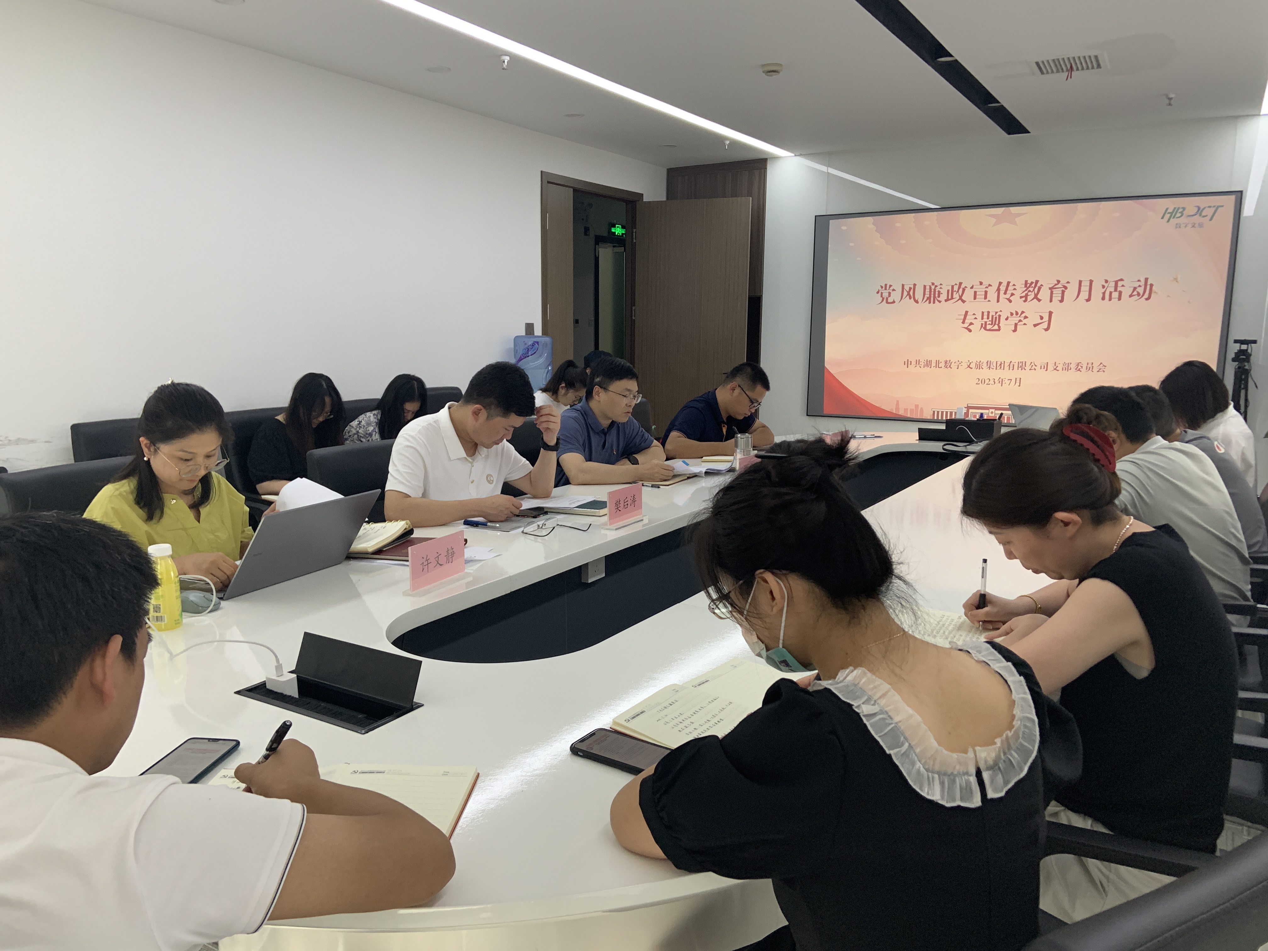 7月20日,數旅集團黨支部組織召開黨風廉政宣傳教育月活動專題學習,會議由支部書記張啟駿主持,全體黨員、中層干部及入黨積極分子參加本次會議。