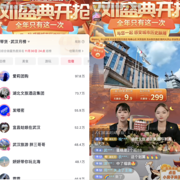 智旅動(dòng)態(tài)周報(bào) 第157期|數(shù)旅集團(tuán) “雙十一”直播 躋身武漢團(tuán)購(gòu)帶貨月榜第2名